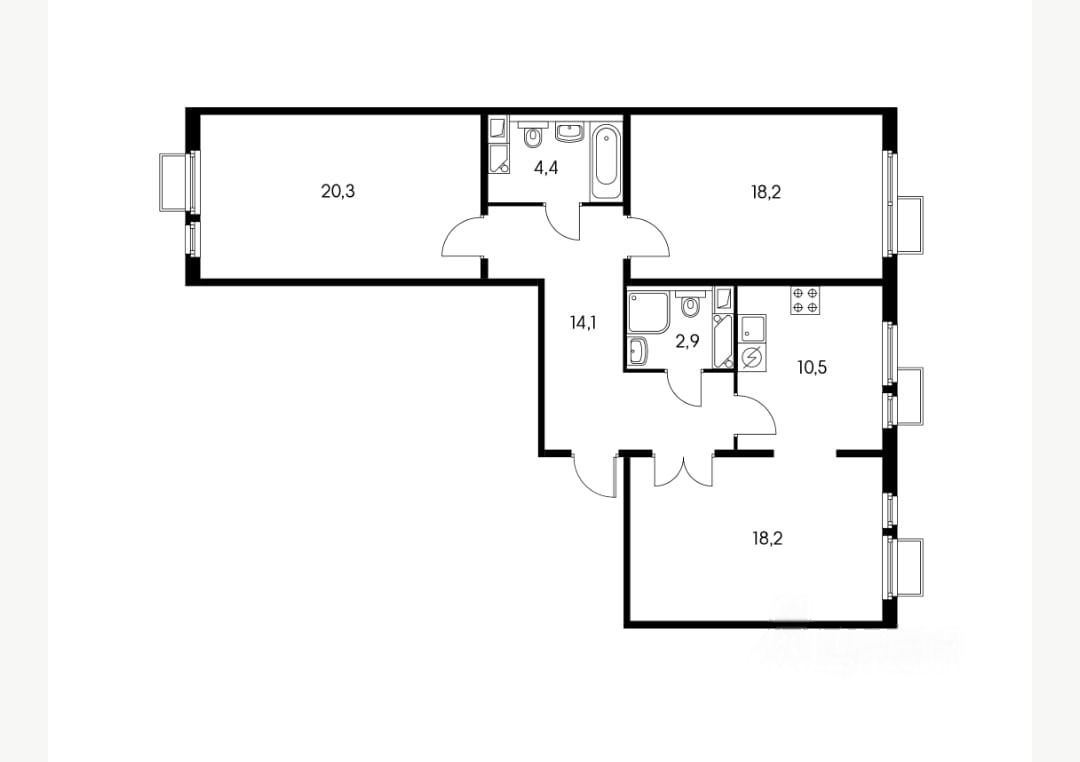 Общая площадь квартиры 87.7 кв. м, 8й этаж из 15ти. Дом панельный, 2019 года.